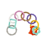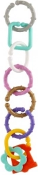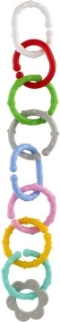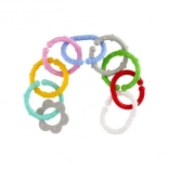 Ez a színes karikákból és formákból álló készlet a legkisebbek számára készült. A változatos színeknek, formáknak és textúráknak köszönhetően a gyerekek természetes módon fejlesztik a érzékszervi észlelést és a kéz–szem koordinációt. Az egyes elemek könnyen összekapcsolhatók és stabilan tartanak, így a kicsik saját láncokat alkothatnak, vagy játékokat rögzíthetnek a babakocsihoz vagy az autósüléshez.