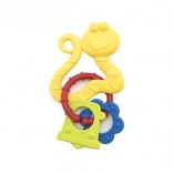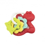 A változatos felületek és karikák gyengéden masszírozzák az ínyt, miközben a csörgő hangja leköti a figyelmet.