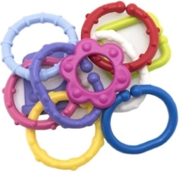 A vidám csörgő hang megnyugtatja a gyermeket, a biztonságos anyagoknak köszönhetően pedig rágókaként is használható.