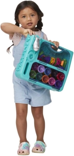 Ebben az univerzális utazókészletben rengeteg kiegészítő és a klasszikus Play-Doh gyurás poharak várják a gyerekeket! Megtalálod benne a Szórakoztató Gyárat és a Fodrászatot, sokféle kiszúróformát és mindenféle ügyes kiegészítőt, így bátran szabadjára engedheted a fantáziádat. Mindenre bőven van hely: a gyurás poharakat a kialakított nyílásokba teheted, az eszközöket és kiszúrókat a tárolóba, amelynek fedelén textúra található – ezzel szuper mintákat készítve még több móka vár. A teljes csomagolás praktikus, minden szükséges dolog elfér benne, a kompakt fogantyúnak köszönhetően pedig kényelmesen magaddal viheted utazáskor, és feldobhatod vele a hétvégét, akár a nagyinál is!