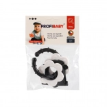 Praktikus fekete-fehér rágókák 4 féle formában, beépített csörgővel és kényelmes fogantyúval, amelyek támogatják a látás fejlődését és a finommotorikát már újszülött kortól. Egészségre ártalmatlan anyagokból készül, mindennapi használatra biztonságos.
