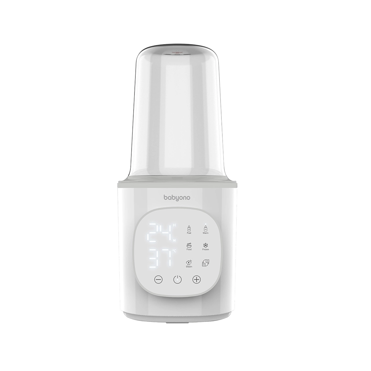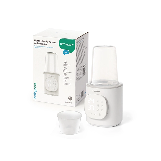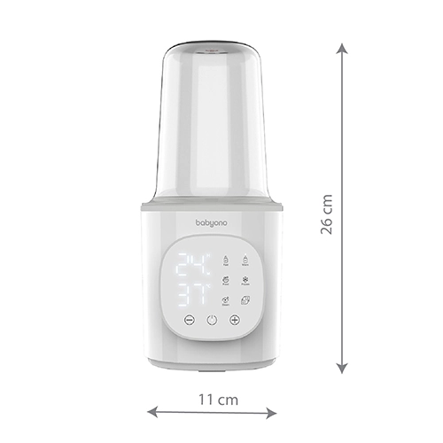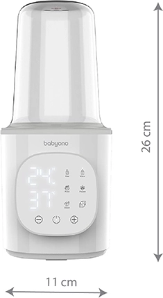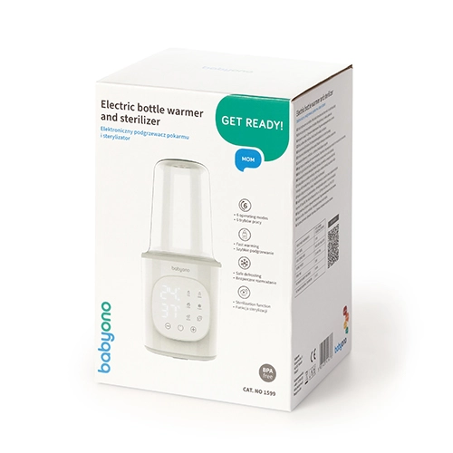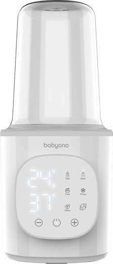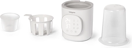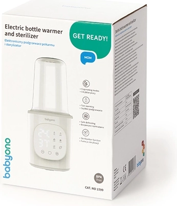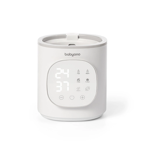 A BabyOno 6 az 1-ben egy multifunkciós melegítő és sterilizáló, amely gyors tejmelegítést, hőmérséklet-tartást, üveges ételek melegítését, biztonságos kiolvasztást és gőzsterilizálást is tud. A 200 W teljesítménynek és a precíz hőfokszabályozásnak köszönhetően egyenletesen és kényelmesen melegít – a legtöbb típusú babaüveghez és tárolóedényhez.