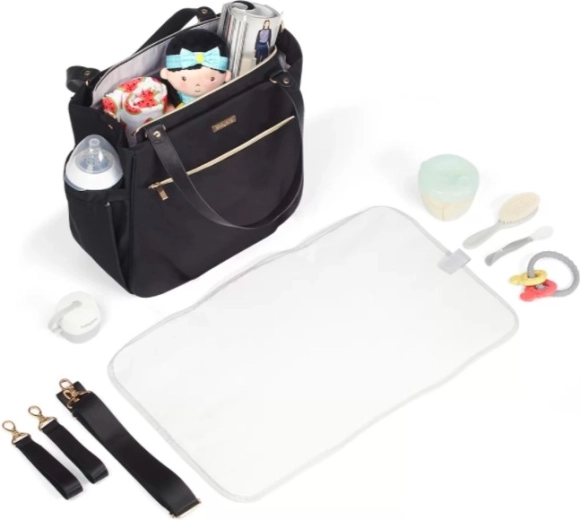 A tartós, sima felületű anyag könnyen tisztítható, és ellenáll a mindennapos használatnak és a változó időjárási körülményeknek. A kényelmes fogantyúk, a levehető vállpánt és a babakocsira rögzíthető oldalpántok maximális hordozási rugalmasságot nyújtanak. A csomag része egy praktikus pelenkázó alátét is a kényelmes gondoskodáshoz útközben.