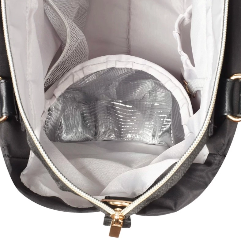 - Okos részletek szülőknek: a hőszigetelő zseb megtartja az ételek és italok hőmérsékletét, külső zsebek palackoknak.