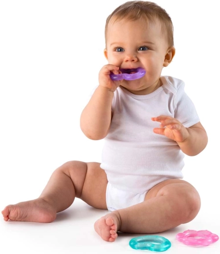 A BRIGHT STARTS rágókaszett azonnali megkönnyebbülést kínál a vízzel töltött kialakításnak köszönhetően, amely a fokozott hűsítő hatásért rövid időre hűtőben lehűthető. A három különböző forma változatos struktúrákkal támogatja az érzékszervi fejlődést, és sokféle rágási lehetőséget biztosít az érzékeny íny számára.