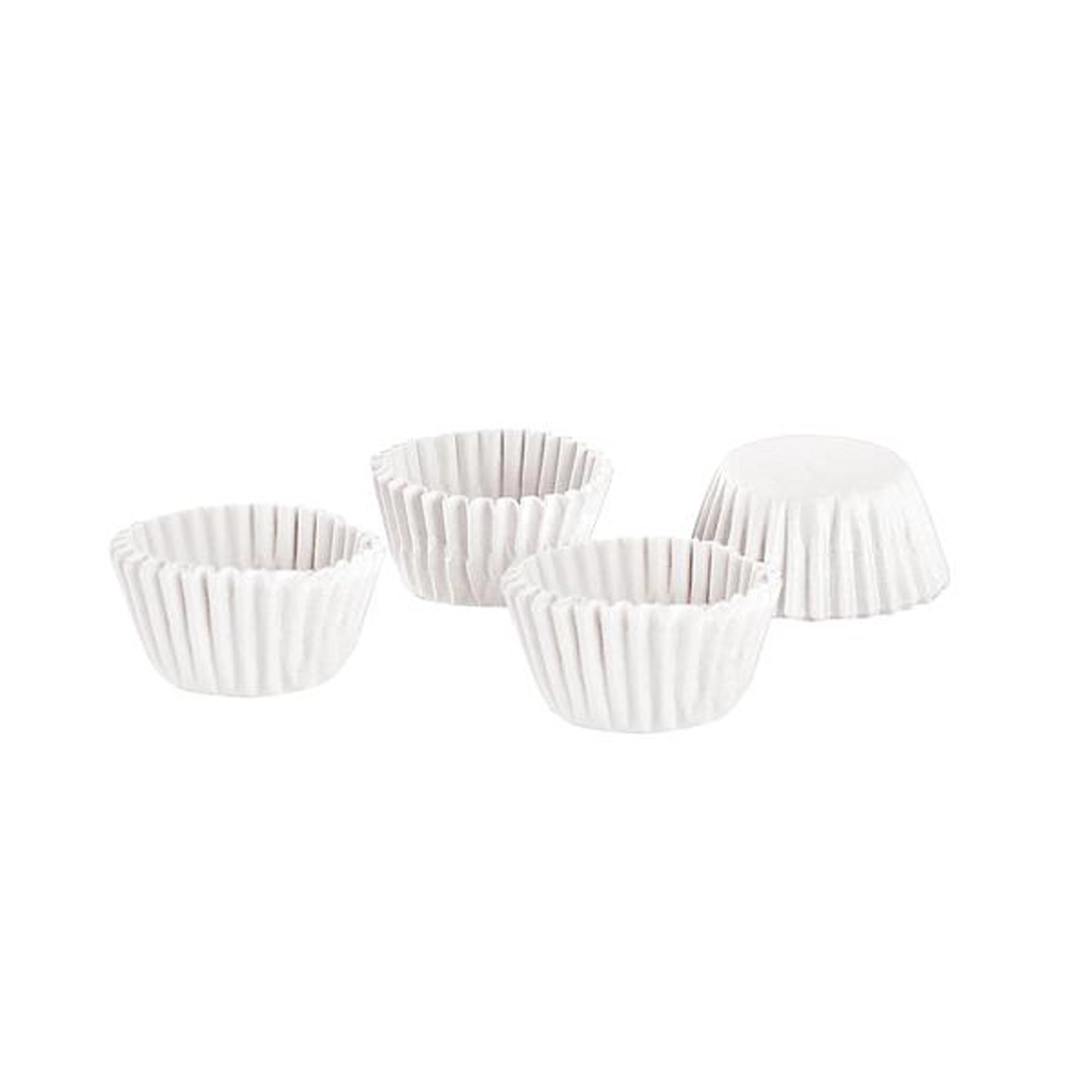 Fehér TORO mini muffin papírkosárkák erős, élelmiszeripari papírból, ideálisak mini muffinok sütéséhez és apró sütemények tálalásához. A csomag 100 db-ot tartalmaz azonos kivitelben, amelyek a minőségi anyagnak köszönhetően jól tartják a formájukat, megkönnyítve a sütést és a stílusos tálalást.