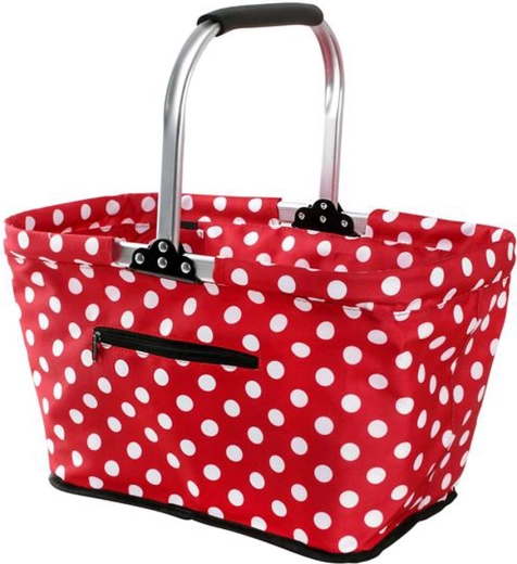 A praktikus, összecsukható TORO bevásárlókosár ideális társ a mindennapi bevásárlásokhoz, piacra járáshoz és utazáshoz. A könnyű szerkezetnek és az egyszerű összehajtásnak köszönhetően helytakarékos, míg az ellenálló anyag tartós használatot biztosít. A nagyvonalú 48 × 28 × 28 cm-es méretek és a 10 kg teherbírás elegendő helyet nyújtanak minden szükséges holminak. A fekete, fehér pöttyös stílusos kivitel első pillantásra megragadja a figyelmet.