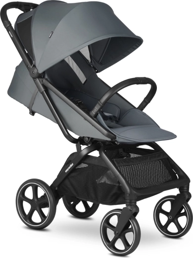 A Rockey L a ROCKEY család legnagyobb tagja: nagy kerekekkel a stabil haladáshoz városban és parkban, tágas üléssel fekvő pozícióval és 7 kg teherbírású kosárral. A automatikus összecsukásnak és kinyitásnak köszönhetően pillanatok alatt menetkész. A prémium, kellemes tapintású, újrahasznosított anyagokból készült szövetek időtlen Smooth Grey színben tökéletesen illenek a fekete vázhoz.