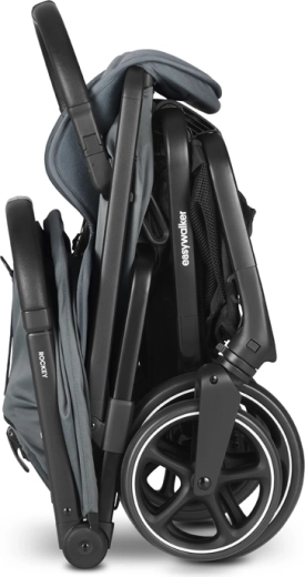 Gyors és gondtalan kezelhetőség: a Rockey L a gomb megnyomása után magától összecsukódik és kinyílik, így szabadon marad a keze a gyermekhez és a bevásárláshoz.