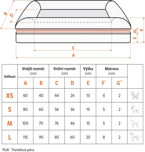 A Cloud XS kényelmes, ortopédiai fekhely kis testű kutyáknak és kölyköknek, amely a hosszú alvás alatt is megfelelő testtámaszt biztosít. A kétrétegű felépítés (4 cm PUR + 2 cm memóriahab, CertiPUR-US) egyenletesen oszlatja el a nyomást, csillapítja a rázkódást és érezhető megkönnyebbülést nyújt az igénybe vett ízületeknek és gerincnek. A magas oldalfalak (13 cm) megtámasztják a fejet, és nyugodt, meghitt, védett pihenőhelyet teremtenek.