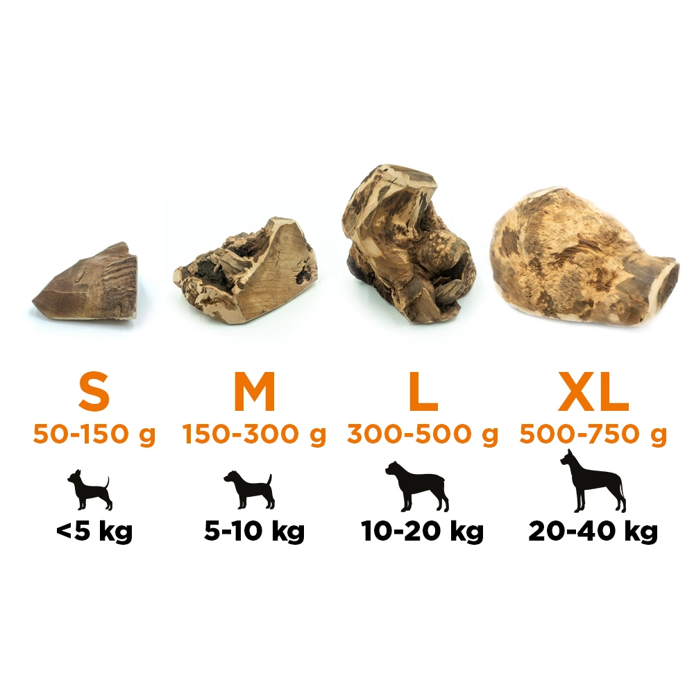 Ajándékozza meg kutyáját egy tartós, teljesen természetes rágójátékkal, amely hanga gyökérből készült. Ezt a gyökeret Olaszországban állítják elő levegőn szárított gyökerekből, vegyszerek és tartósítószerek nélkül. Nem hasad éles darabokra, biztonságos, támogatja a tiszta fogakat, és magas keménységének köszönhetően erős rágóknak is ellenáll.
