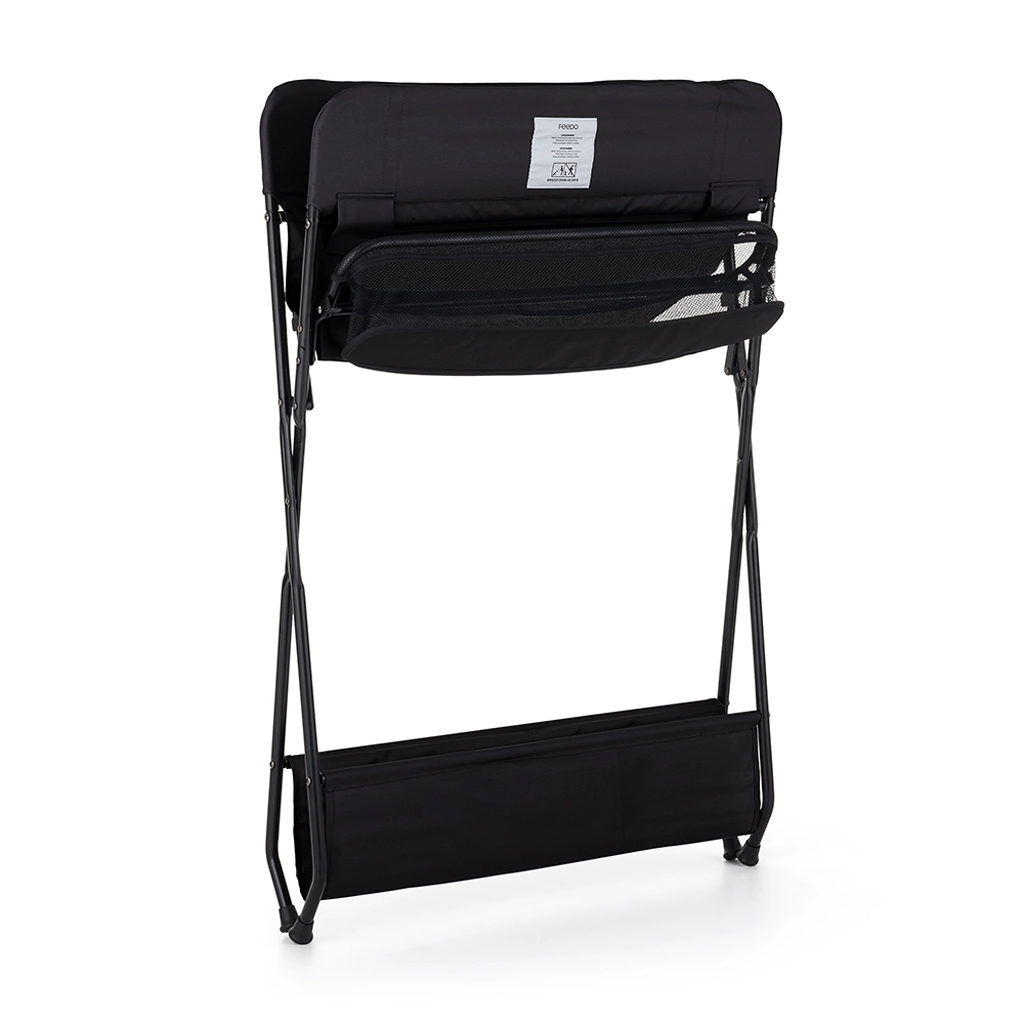 Élvezze a kényelmes és biztonságos pelenkázást a FEEDO Black pelenkázóállvánnyal. Az oldalsó rekeszeknek köszönhetően a pelenkák, törlőkendők és krémek mindig kéznél vannak, míg az alsó polc további babaápolási kellékeknek ad helyet. A masszív szerkezet stabilitást és hosszú élettartamot biztosít, az állvány pedig könnyen tisztán tartható.