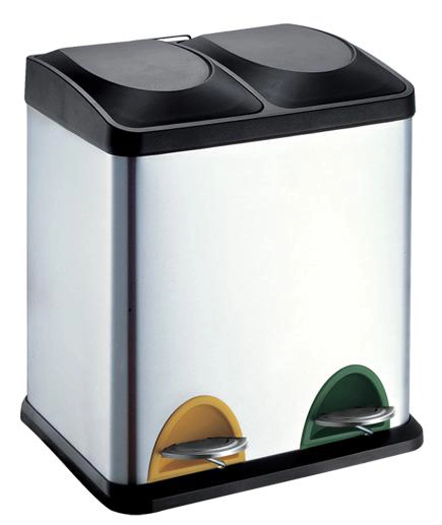 Elegáns rozsdamentes szelektív hulladékgyűjtő, össztérfogata 30 l (2×15 l), ideális konyhába vagy irodába. Két külön belső edény megkönnyíti a hulladék szelektálását, a pedálos működtetés biztosítja a higiénikus fedőnyitást kézhasználat nélkül, a kompakt méretek pedig helyet takarítanak meg. A tartós rozsdamentes felület könnyen tisztítható és modern hatást kelt bármely belső térben.