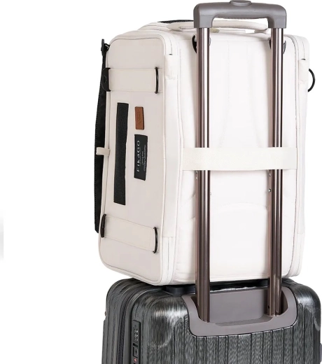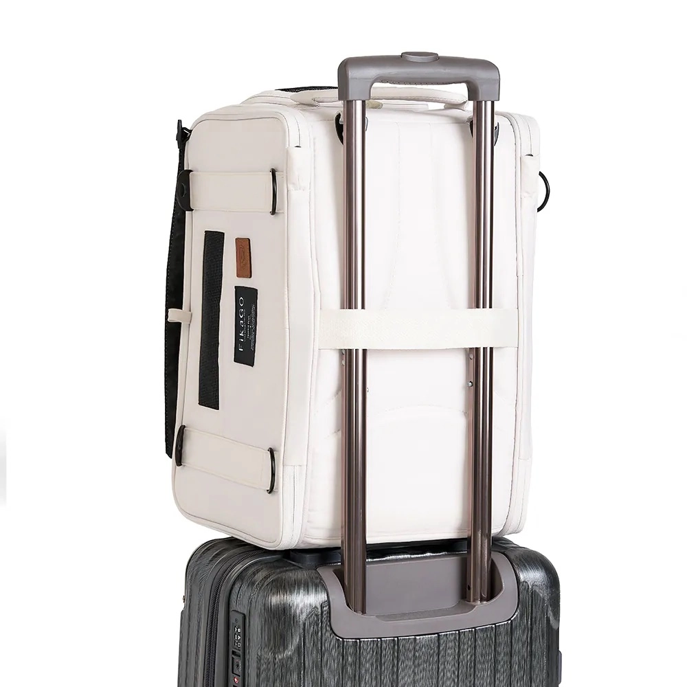 Repülős utazáshoz és mindennapi közlekedéshez egyaránt: a 43 × 27 × 28 cm-es kompakt méretek megfelelnek a legtöbb légitársaság ülés alatti elhelyezési követelményeinek. Az eltávolítható pántoknak köszönhetően a táska kényelmesen hordható vállon vagy hátizsákként, hogy a kezek szabadok maradjanak. Belül biztonsági csat akadályozza meg a nem kívánt kiugrást, a puha, párnázott alj pedig nyugodt pihenést biztosít.
