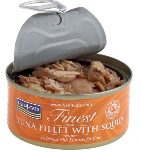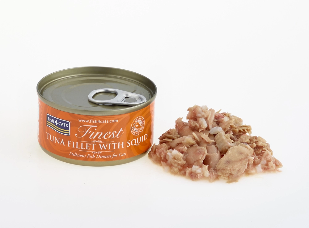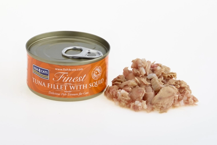 A Fish4Cats Finest Tonhal tintahallal népszerű nedves eledel a válogatós cicanyelveknek. A magas halfeltöltés természetes forrása a minőségi fehérjéknek és az omega–3-nak, melyek támogatják a szőrzetet, a bőrt és az általános vitalitást. A lágy állag és a szaftos alaplé növeli a ízletességet még a válogatós macskáknál is.