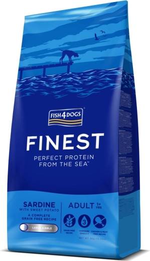 A FISH4DOGS kiegyensúlyozott, szardíniás és édesburgonyás eledele ideális a nagytestű felnőtt kutyák mindennapi táplálására. A fenntartható forrásból származó szardínia természetes módon magas omega–3 tartalmat biztosít, amely támogatja az ízületek, a bőr és a szőrzet egészségét. Az édesburgonya kiváló gabonamentes energiaforrás, és segíti a kíméletes emésztést.
