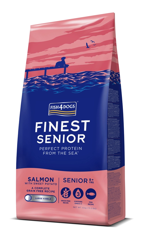 Kímélő és ízletes eledelt keres kutya-szenioroknak? A Fish4Dogs magas lazactartalmú krokettjei minőségi fehérjét és értékes omega–3-at biztosítanak. Az édesburgonya tápláló alternatíva a fehér burgonyával szemben, és segít a nap során egyenletes energiaszintet fenntartani.