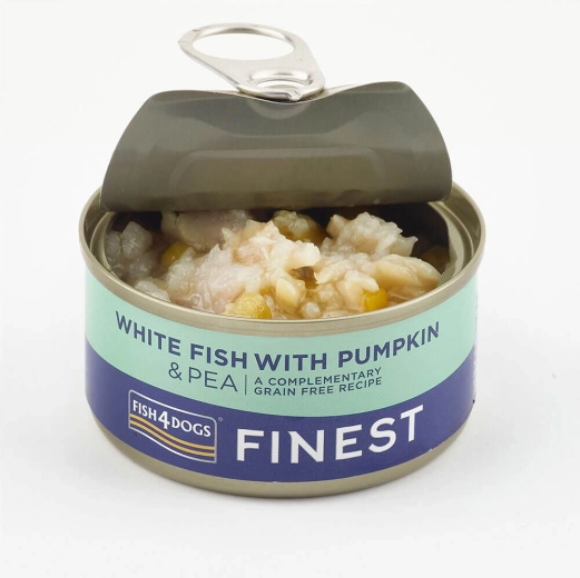 Kényeztesse kutyáját szaftos konzervvel fehér halból sütőtökkel és borsóval. A receptúra alapja 50% fehér hal, amely természetes forrása a minőségi fehérjéknek és az alacsony zsírtartalomnak, kiegészítve sütőtökkel és borsóval a jobb emészthetőségért és ízért. A konzerv gabonamentes, érzékeny kutyáknak is megfelelő.