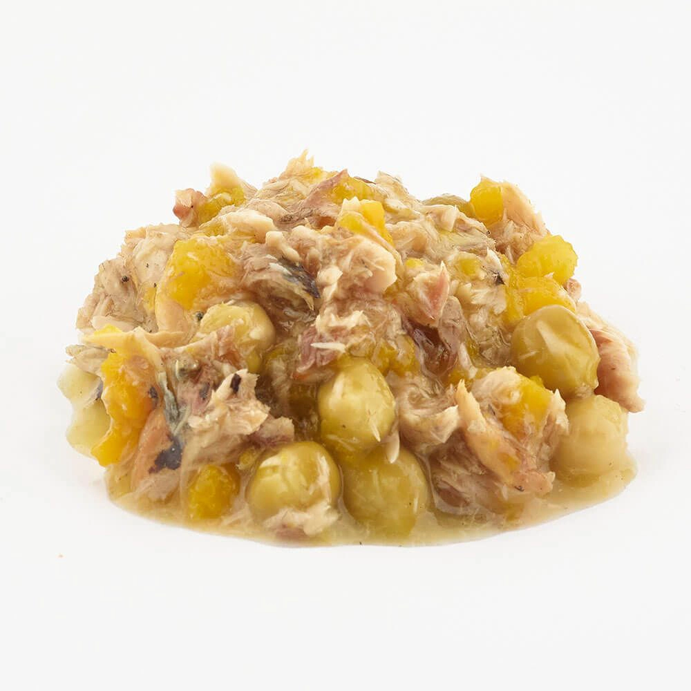 Összetétel: makréla (50%), borsó (8%), sütőtök (8%), tápióka-keményítő.