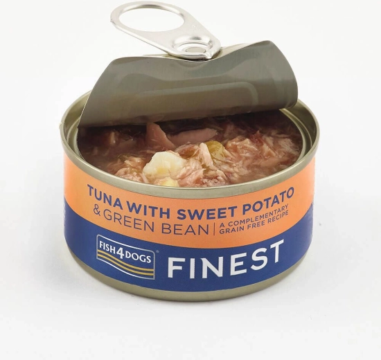 A FISH4DOGS Finest ízletes kutyakonzerv tonhallal, batátával és zöldbabbal minőségi alapanyagokból készül, természetes, kíméletes táplálást kínál. A receptúra gabona nélkül, mesterséges színezékek és aromák nélkül készül, és ízletes kiegészítőként vagy jutalomfalatként is ideális. A szaftos állag a tonhal és a zöldségek darabjaival még a válogatós kutyáknak is vonzó, és változatos étrendet támogat.