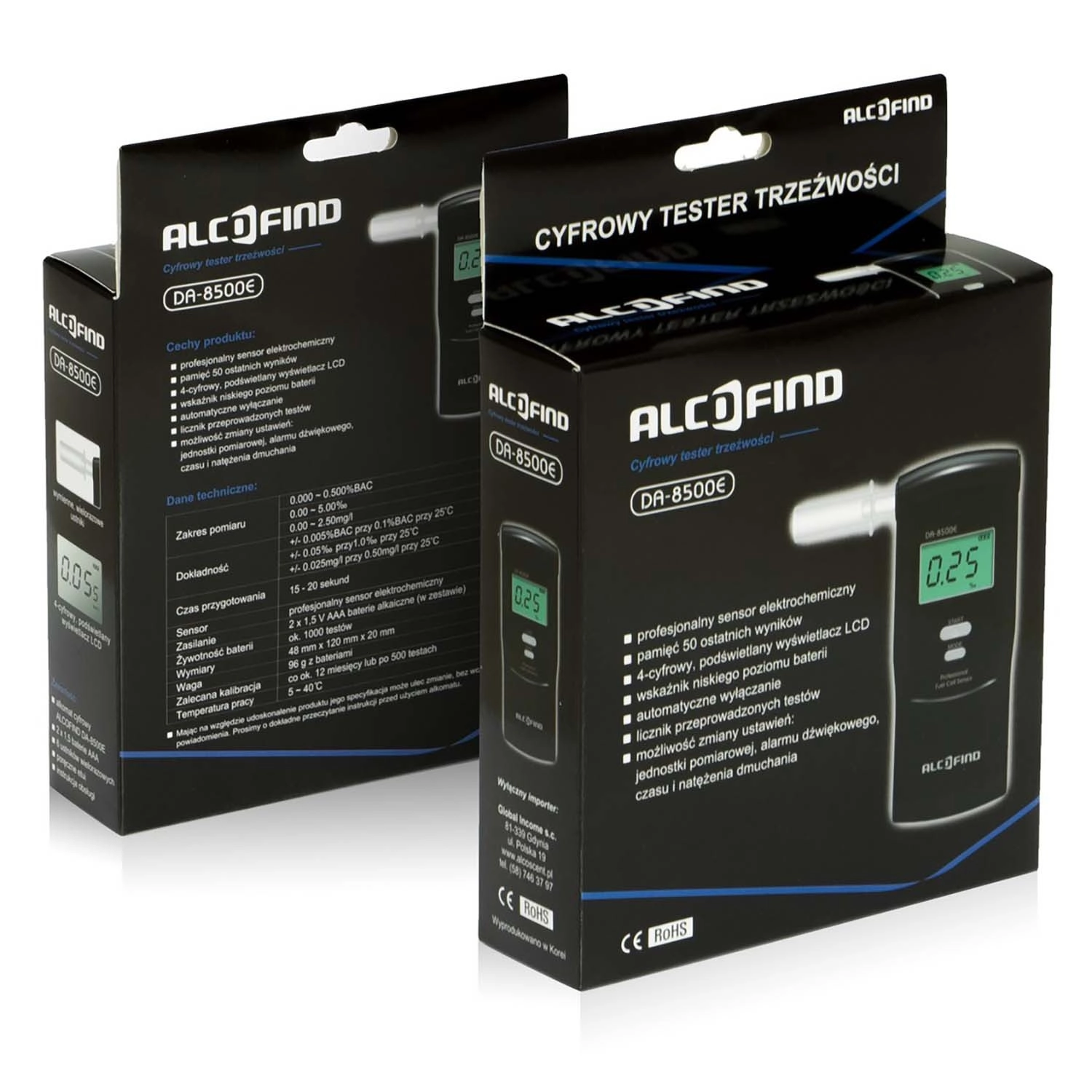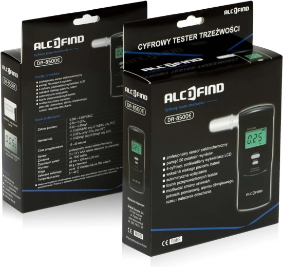 - DA-8500E alkoholszonda, tok, 2× AAA, 6× újrafelhasználható szívócső, 100× egyszer használatos szívócső, magyar nyelvű útmutató, díszdoboz, jótállási jegy, ingyenes kalibrálás 12 hónapig