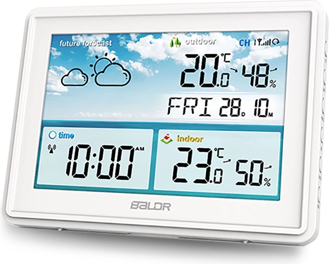 Ez az elegáns, fehér időjárás-állomás a pontos mérést nagy LCD-n történő áttekinthető megjelenítéssel ötvözi. A vezeték nélküli kültéri érzékelőnek (hatótáv akár 60 m) köszönhetően a benti és kinti aktuális feltételek mindig kéznél vannak. A 12 órás időjárás-előrejelzés a hőmérséklet, a nyomás és a páratartalom folyamatos elemzésén alapul, így könnyebb megtervezni a napot.