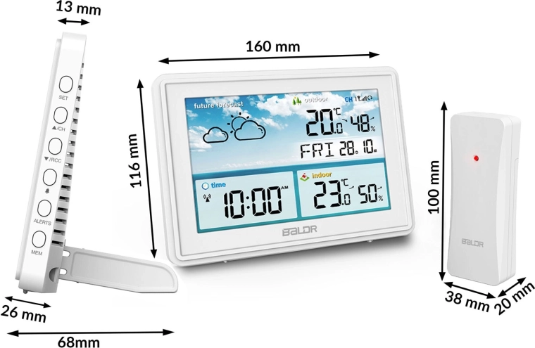 Nem hiányzik a DCF77 a pontos időhöz, a szundi funkciós ébresztő, a 2099-ig érvényes naptár, valamint a MAX/MIN memória hőmérséklethez és páratartalomhoz. Hasznosak a hőmérsékleti riasztások és a fagyjelzés is. A kijelző kétfokozatú háttérvilágítással (100% / 50%) rendelkezik, és teljesen kikapcsolható éjszakai módhoz.