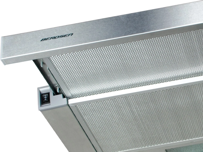 A teleszkópos (kihúzható) BERDSEN páraelszívó ideális választás modern és kisebb konyhákba is, ahol számít a hely és a design. A kihúzható előléc megnöveli a felfogó felületet a főzőlap felett és javítja az elszívás hatékonyságát, miközben a karcsú készüléktest a felső szekrényben marad rejtve. Az Inox rozsdamentes kivitel könnyen tisztítható és a legtöbb készülékkel harmonizál.