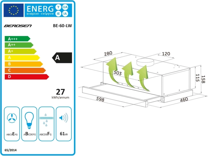 A két üzemmódnak köszönhetően használható kivezetéssel kéménybe/szellőzőcsőbe (Ø 120 mm), vagy keringetéssel opcionális aktívszén-szűrővel (Berdsen TYP-A típus). A mechanikus vezérlés és a 2 fokozat megkönnyíti a mindennapi használatot, a energiatakarékos 4 W-os LED világítás jobb rálátást biztosít főzés közben, az 5 rétegű alumínium zsírszűrő pedig hatékonyan fogja fel a zsírt.