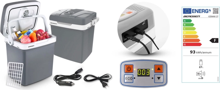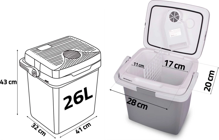 Könnyű utazó hűtőláda hűtés és melegítés funkcióval, 26 literes űrtartalommal, hogy útközben is ideális hőmérsékleten tartsa az ételeket és italokat. Elektronikus kijelzőt kínál célhőmérséklet-beállítással, ECO és Normál módot, 12 V autós és 230 V hálózati tápellátást, valamint csendes, 39 dB-es működést. A beépített ventilátor egyenletes hűtést biztosít, a praktikus összecsukható fogantyú pedig megkönnyíti a hordozást.