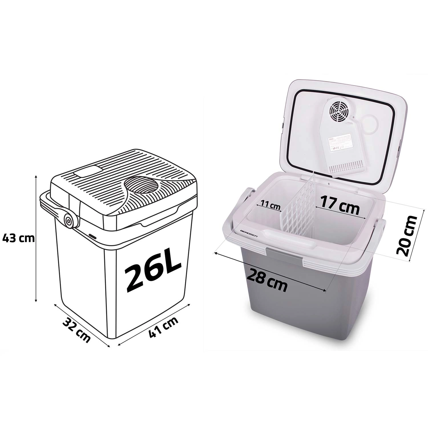 A 12 V-os (autó) és 230 V-os (hálózat) tápellátásnak köszönhetően bárhol bevethető. A beépített ventilátor a levegő keringetésével egyenletes hűtést ad, a fedéltömítés és a praktikus fogantyúzár pedig segít stabil hőmérsékletet tartani. A csomag része egy osztórács a jobb belső rendszerezéshez – ideális gyümölcsökhöz, italokhoz vagy harapnivalókhoz.