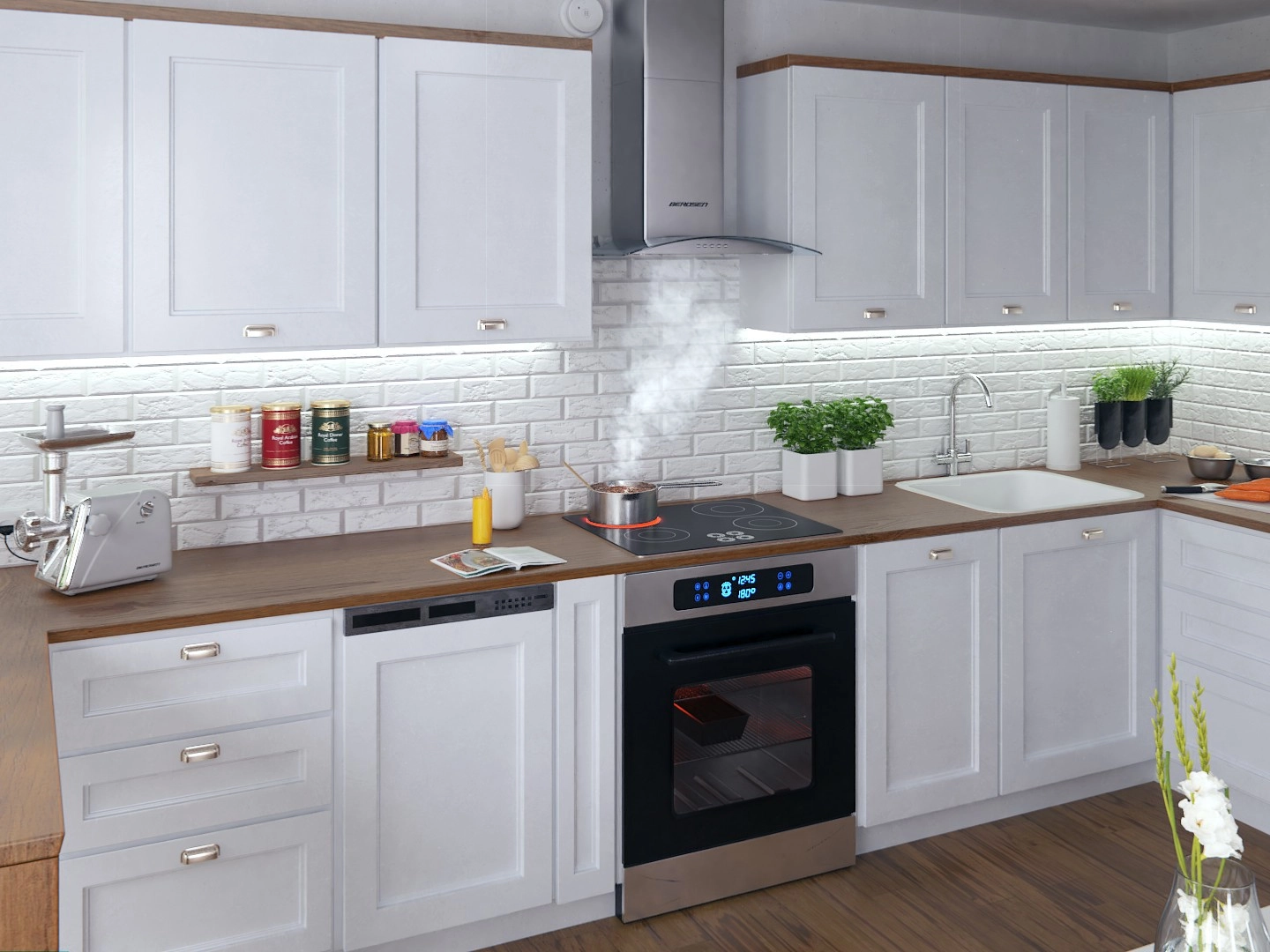 A készülék működhet külső kivezetéssel vagy recirkulációs üzemmódban a külön megvásárolható BERDSEN BT-S aktívszén-szűrőkkel (nem tartozék). A mechanikus, nyomógombos vezérlés egyszerű és strapabíró, míg az 5 rétegű alumínium zsírszűrő könnyű karbantartást és magas szűrési hatékonyságot biztosít.