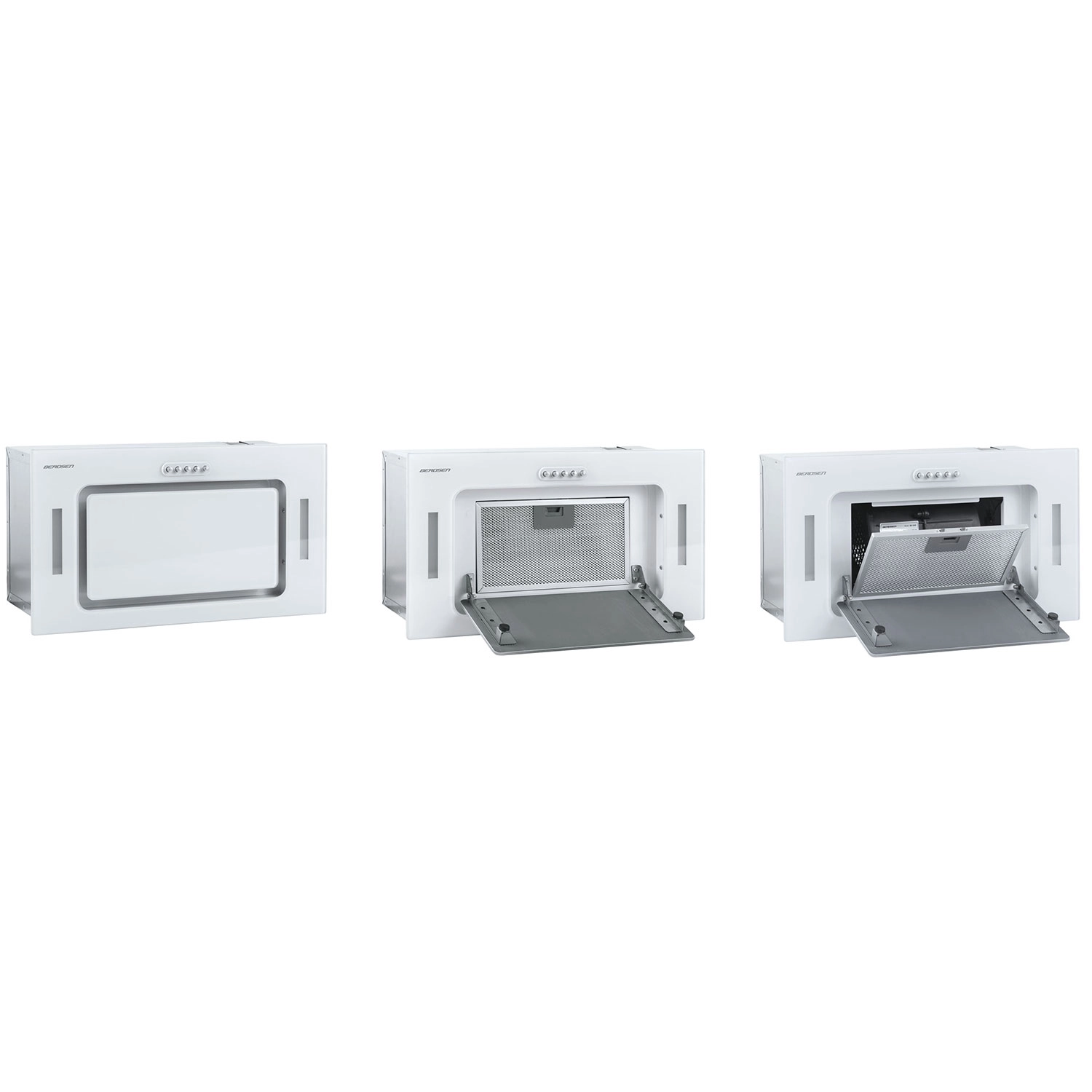 A kompakt, szekrény alá szerelhető BERDSEN BE-52A páraelszívó fehér színben, üveg előlapjával akár 380 m³/h teljesítményt, 3 fokozatot, csendes működést és energiatakarékos LED világítást kínál. Használható kivezetéssel vagy légkeringetéses módban aktívszén-szűrőkkel. A tartós alumínium zsírszűrő könnyen kivehető és folyó víz alatt elmosható.