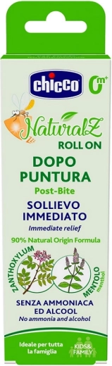 A Chicco csípés utáni roll-on ideális segítőtárs minden családi házipatikában és utazáshoz is. A természetes kivonatok kombinációjának, különösen a Zanthoxylum bungeanum-nak köszönhetően megnyugtatja az érzékeny gyermekbőrt, és csökkenti a szúnyog- vagy más rovarcsípés utáni kellemetlen viszketést. A hozzáadott mentol kellemes hűsítést és gyors enyhülést nyújt.