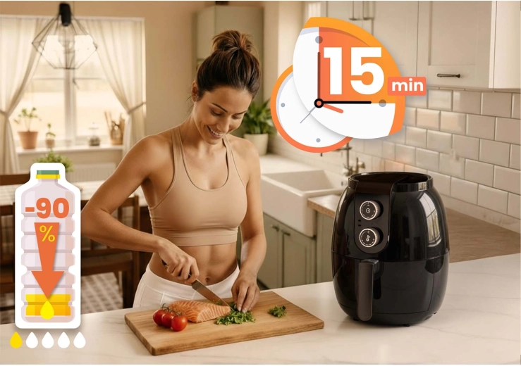 A fejlett forrólevegő-keringetés aranybarna kérget és szaftos belsőt biztosít, akár 90%-kal kevesebb zsírral. Tökéletes hasábburgonyához, csirkéhez és zöldségekhez.