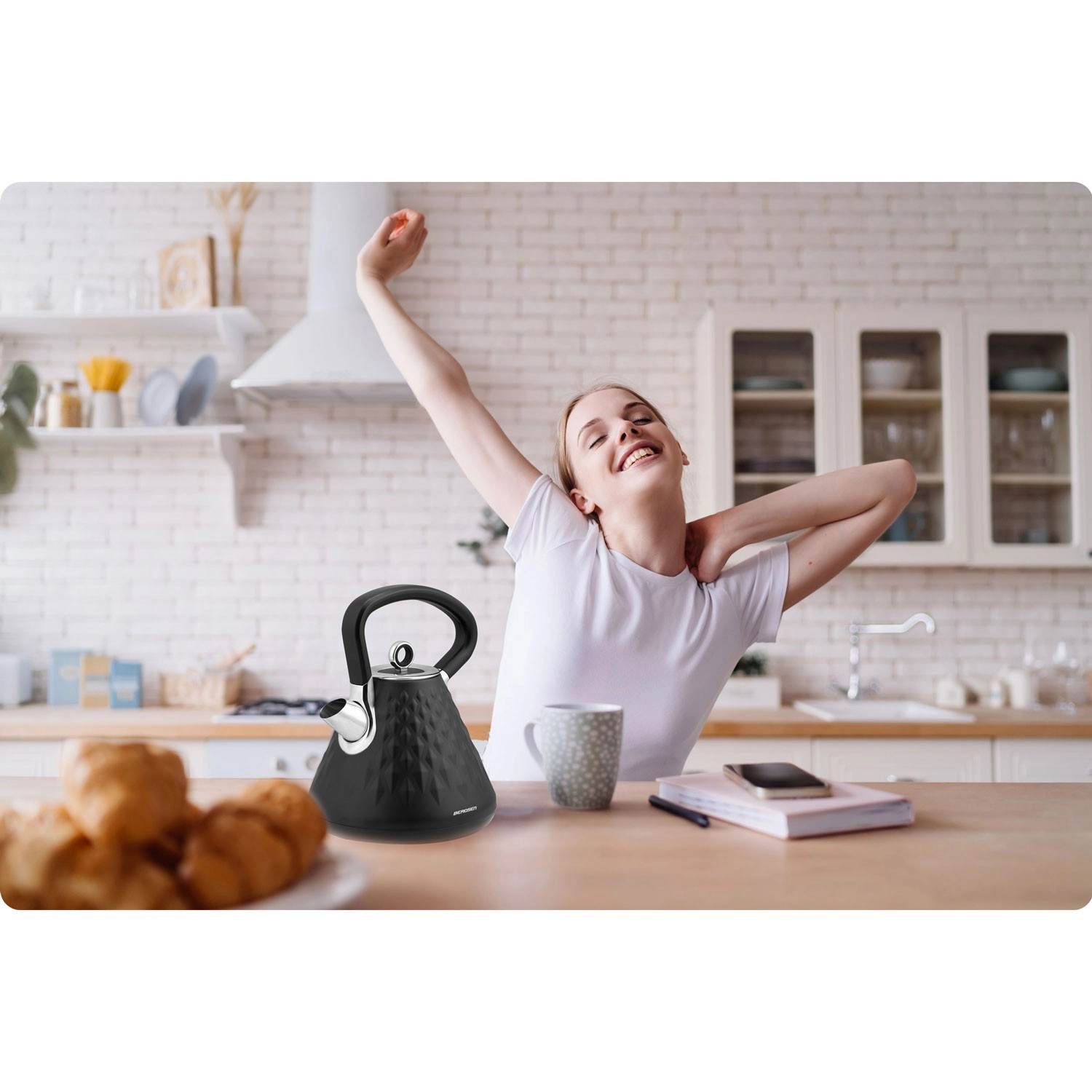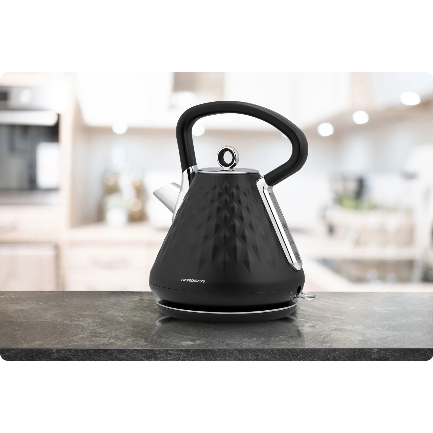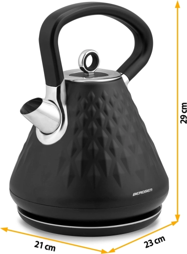 A 1,7 literes Berdsen elektromos vízforraló a gyors felforralást, a prémium, matt kivitelű dizájnt és a 360°-ban forgatható talpat ötvözi. Ergonomikus, nem melegedő fogantyúval, kivehető fém vízkőszűrővel, világító kapcsolóval és csúszásgátló lábakkal a biztonságos használatért.