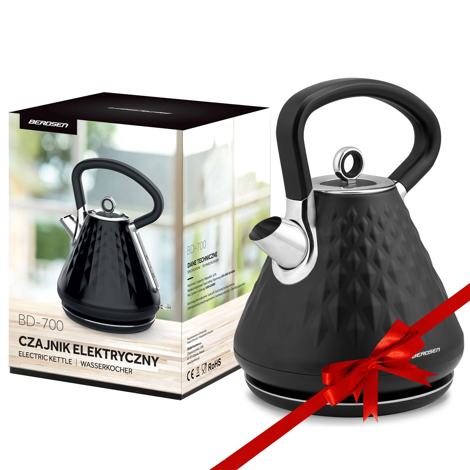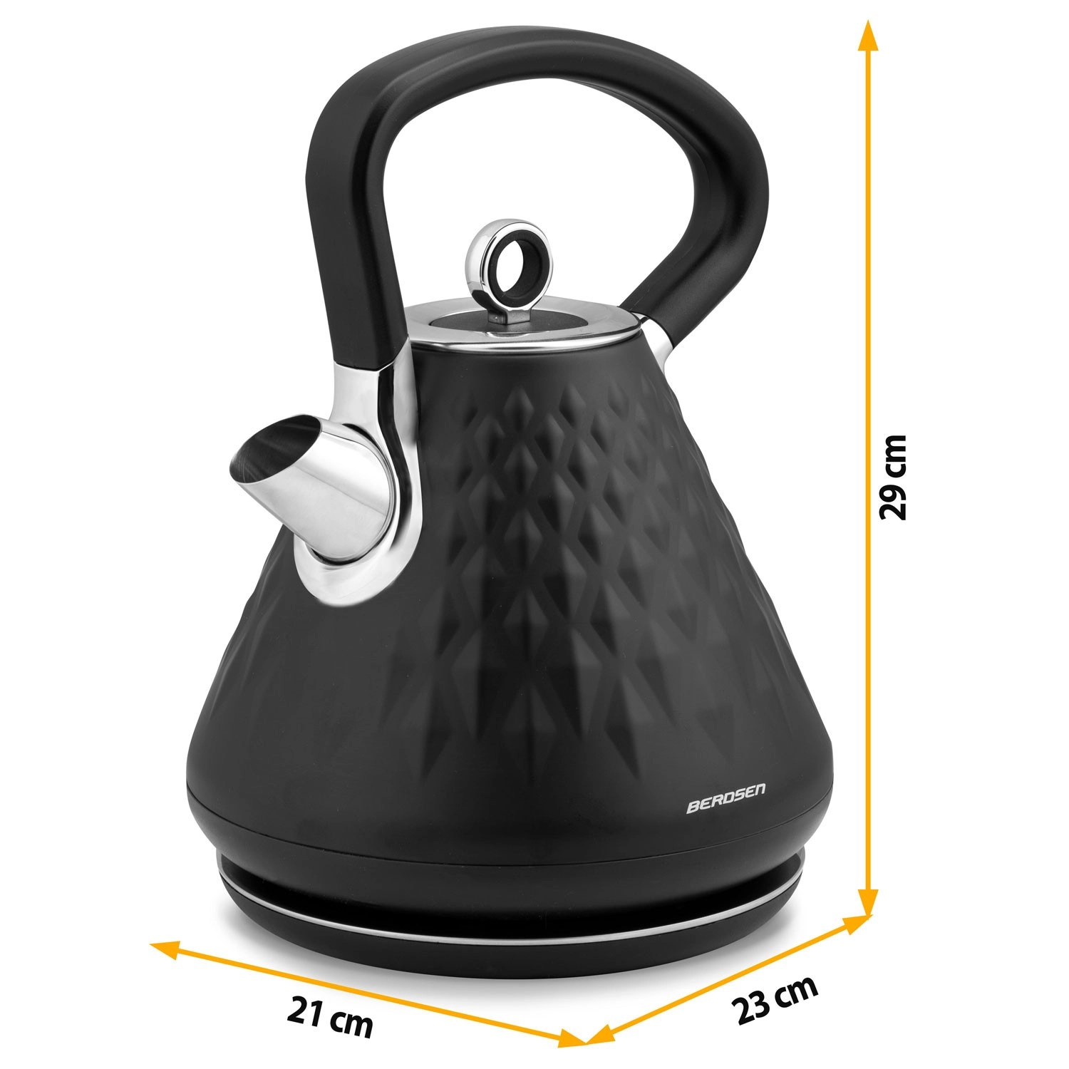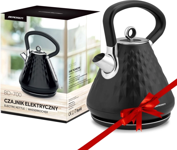 A Berdsen vízforraló fémházzal és elegáns, térbeli textúrájú matt felülettel bármely konyha dísze lehet. A 1850–2200 W teljesítménynek köszönhetően pillanatok alatt felforralja a vizet, míg a 360°-ban forgatható talp és a rejtett kábelrekesz maximális kényelmet biztosít a pulton.