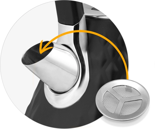 A kifolyóban található finom vízkőszűrő felfogja a lerakódásokat, könnyen kivehető, elöblíthető vagy újra cserélhető, így az ital mindig tiszta marad.