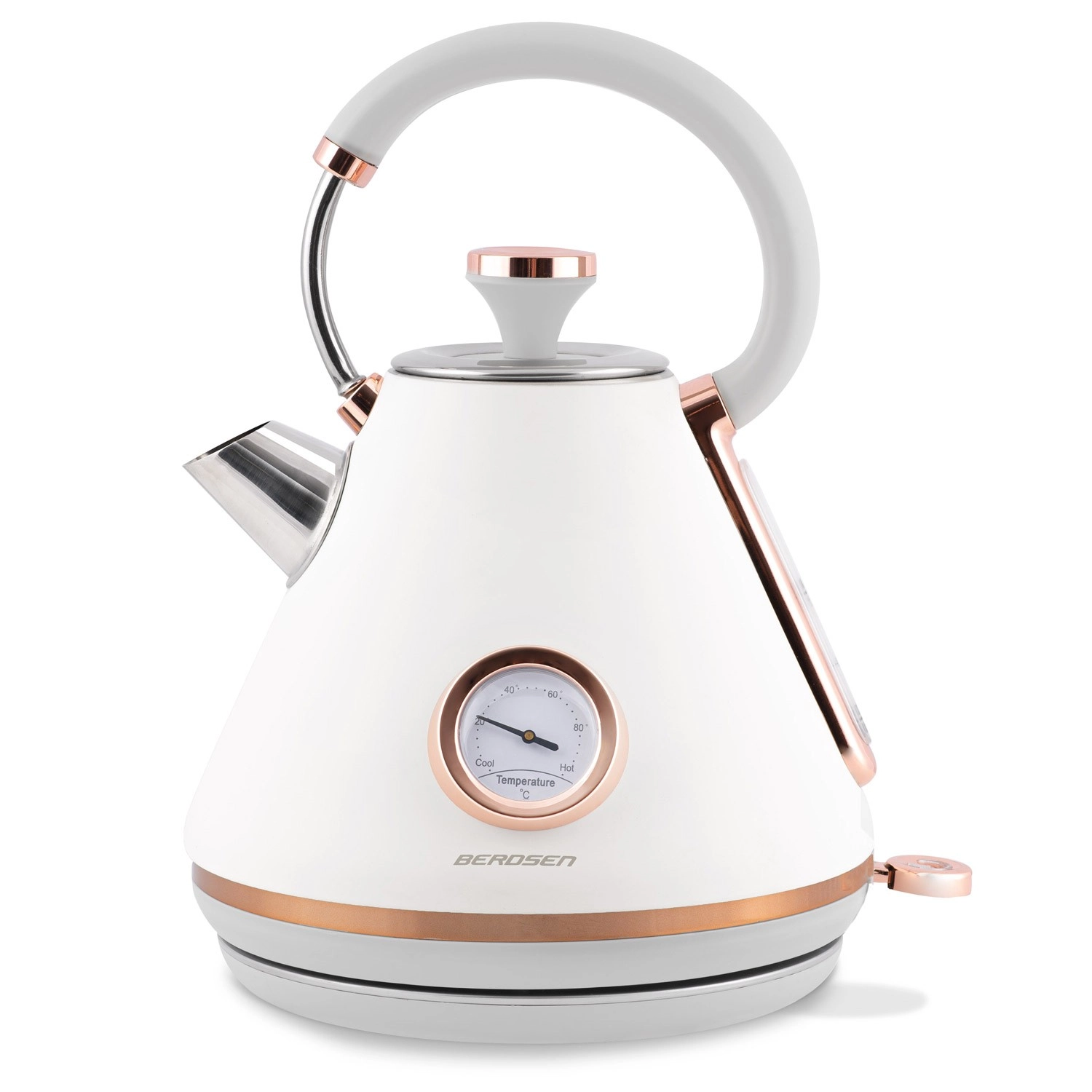 Élvezze a teát, kávét és alternatív italokat tökéletes pontossággal. A BERDSEN vízforraló beépített analóg hőmérője lehetővé teszi a víz ideális hőfokra melegítését. A minőségi, matt felületű fém konstrukció, a levehető tető és a stabil talp csúszásgátló lábakkal hosszú élettartamot és kényelmes, mindennapi használatot garantál.