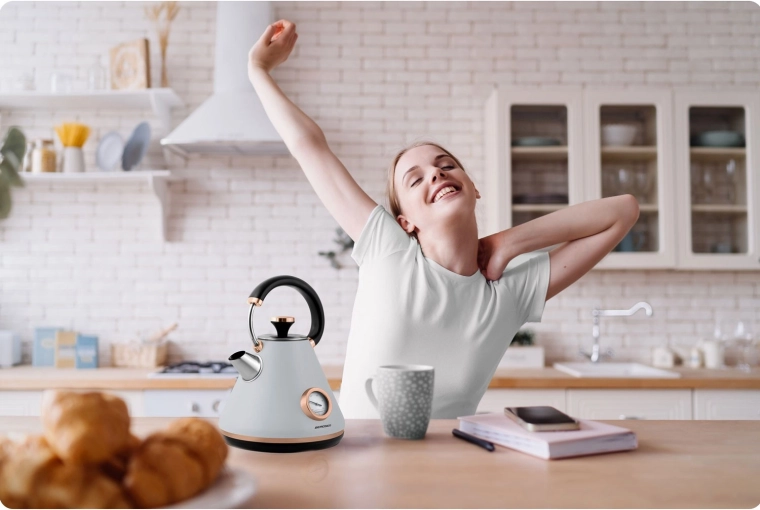 A beépített analóg hőmérő segít ideális hőmérsékletű vizet készíteni teához vagy kávéhoz – felesleges forralás nélkül.
