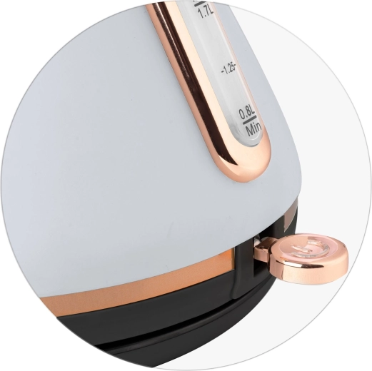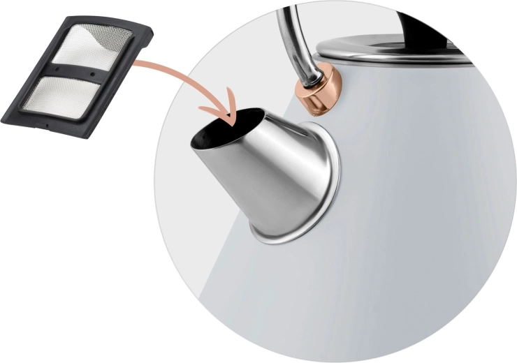 A maximális kényelem érdekében a vízforraló 360°-ban forgatható talppal, kábeltároló hellyel és csúszásgátló lábakkal rendelkezik. A nem melegedő fogantyú, a könnyen levehető fedél és a kivehető, fém vízkőszűrő megkönnyíti a karbantartást és a biztonságos kezelést. A szárazonfutás elleni védelemnek köszönhetően a működés mindig biztonságos.