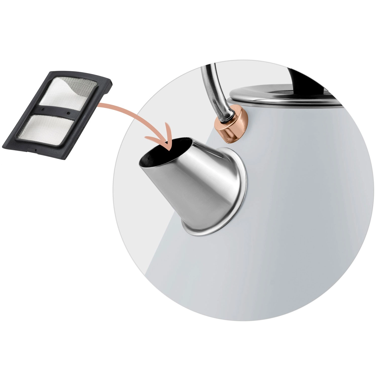 - Kivehető, fém vízkőszűrő