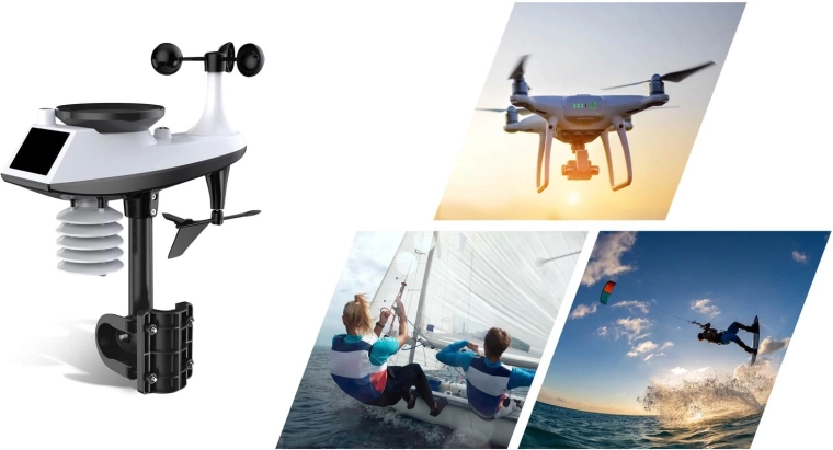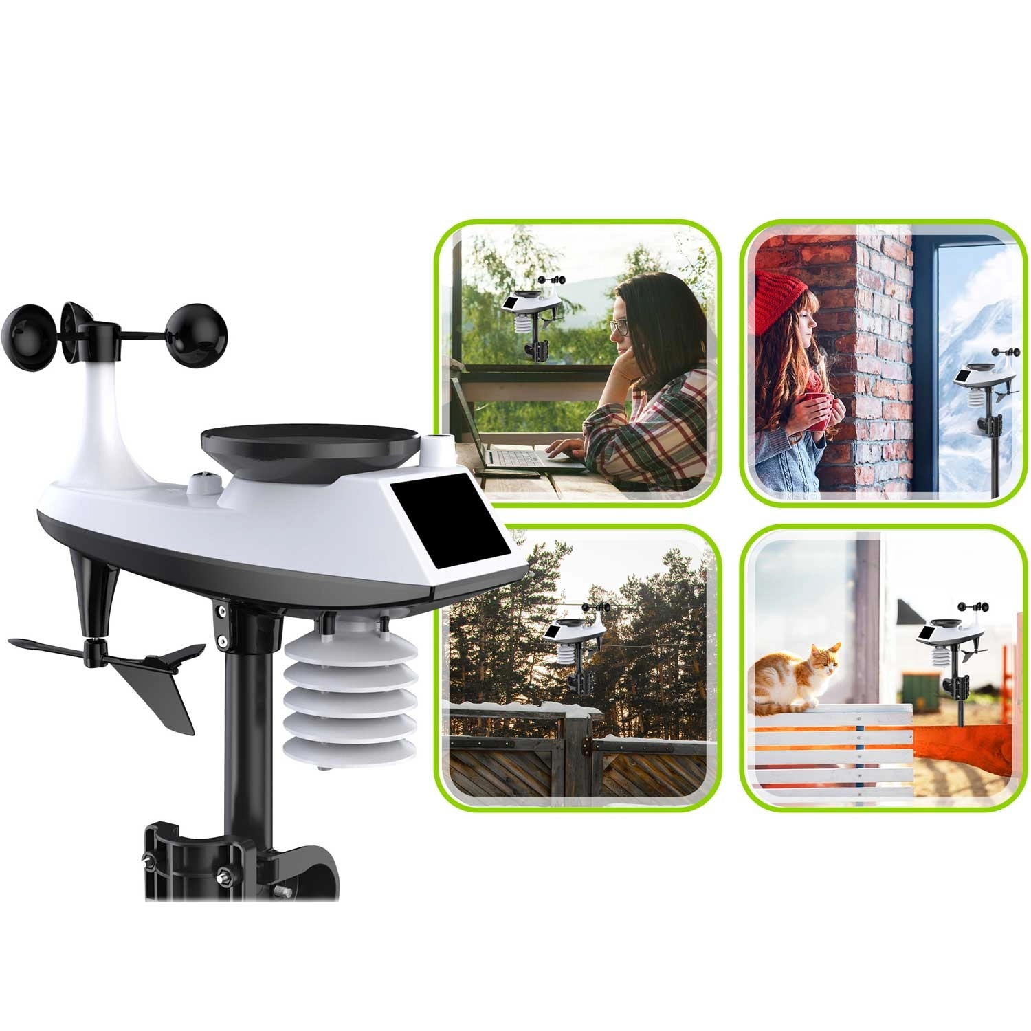 Méri a szél sebességét és irányát, a csapadékösszeget, a kültéri hőmérsékletet és páratartalmat. Stabil vezeték nélküli kapcsolat akár 100 m-ig és napelemmel támogatott tápellátás.