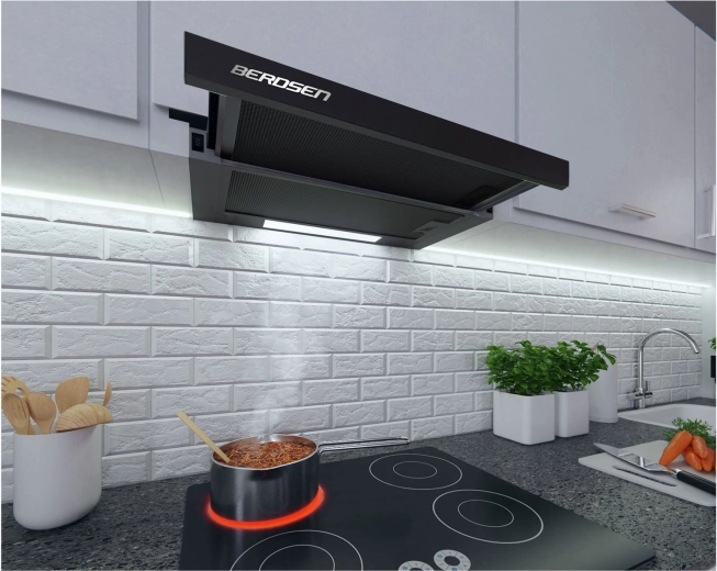 Ez a teleszkópos (kihúzható) páraelszívó ideális választás modern és minimalista konyhákba, ahol minden centiméter számít. Diszkréten a szekrénybe simul, és az előlapi panel kihúzásával növeli a beszívási felületet, így hatékonyabban fogja fel a gőzöket és szagokat közvetlenül a főzőlap felett. A takarékos LED világítás jobb rálátást biztosít az edényekre és serpenyőkre, miközben energiát takarít meg.