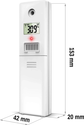 Bővítse időjárás-állomását egy vezeték nélküli hőmérséklet- és páratartalom-érzékelővel, amely kompatibilis a BERDSEN BD-905 készülékkel. Stabil 433,92 MHz-es átvitelt, akár 100 m hatótávot, széles -40 °C–+70 °C hőmérséklet-tartományt és 20–95% páratartalom-mérést kínál. Kompakt méreteinek és 2× AAA tápellátásának köszönhetően könnyen elhelyezhető beltéren és kültéren is.