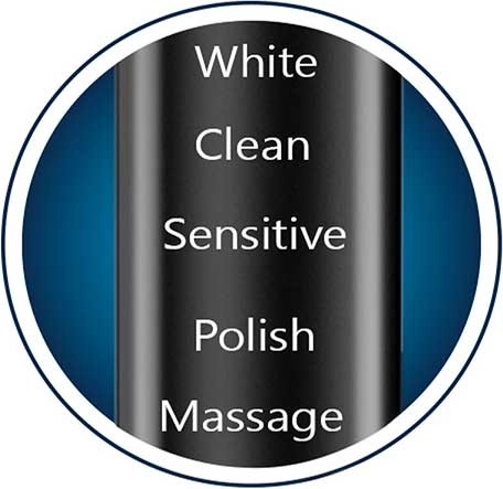 - 5 üzemmód fehérítéshez, mindennapi tisztításhoz, érzékeny fogakhoz, polírozáshoz és ínymasszázshoz.