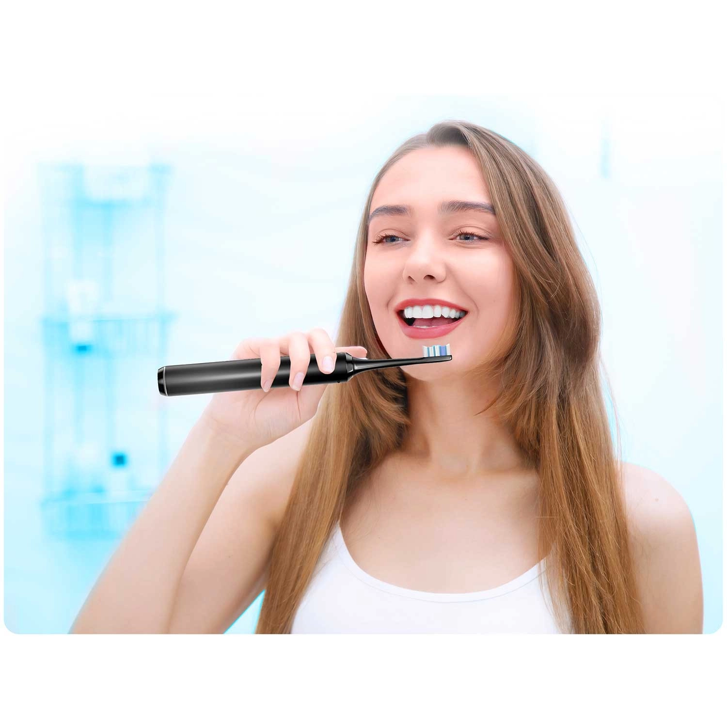 A minimalista ház kényelmes fogást biztosít, a vízálló konstrukció biztonságos használatot nyújt a fürdőszobában, a többzónás sörték pedig a nehezebben elérhető helyeket is hatékonyan tisztítják.