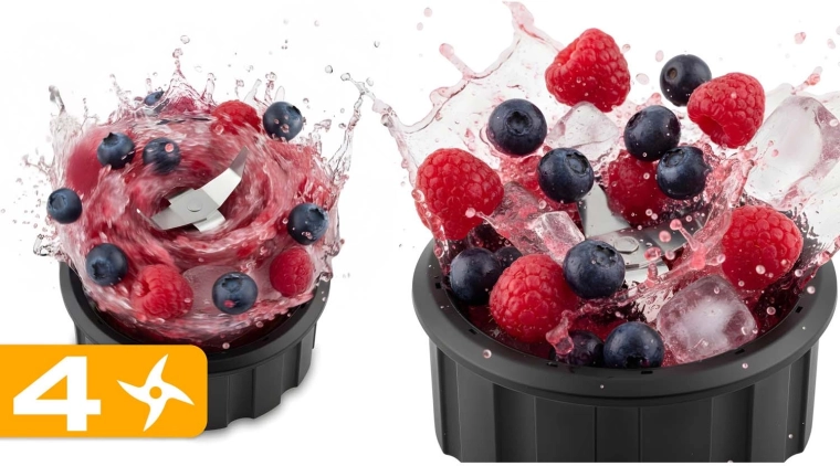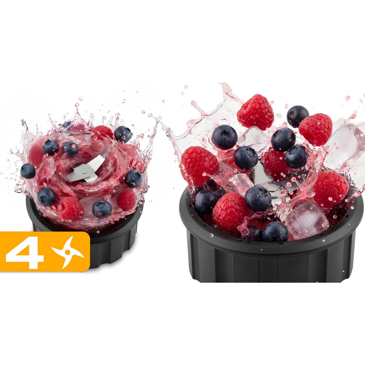 A 800 W-os motor és az éles rozsdamentes acél pengék megbirkóznak a kemény alapanyagokkal és a jégkockákkal, sima eredményt biztosítva.