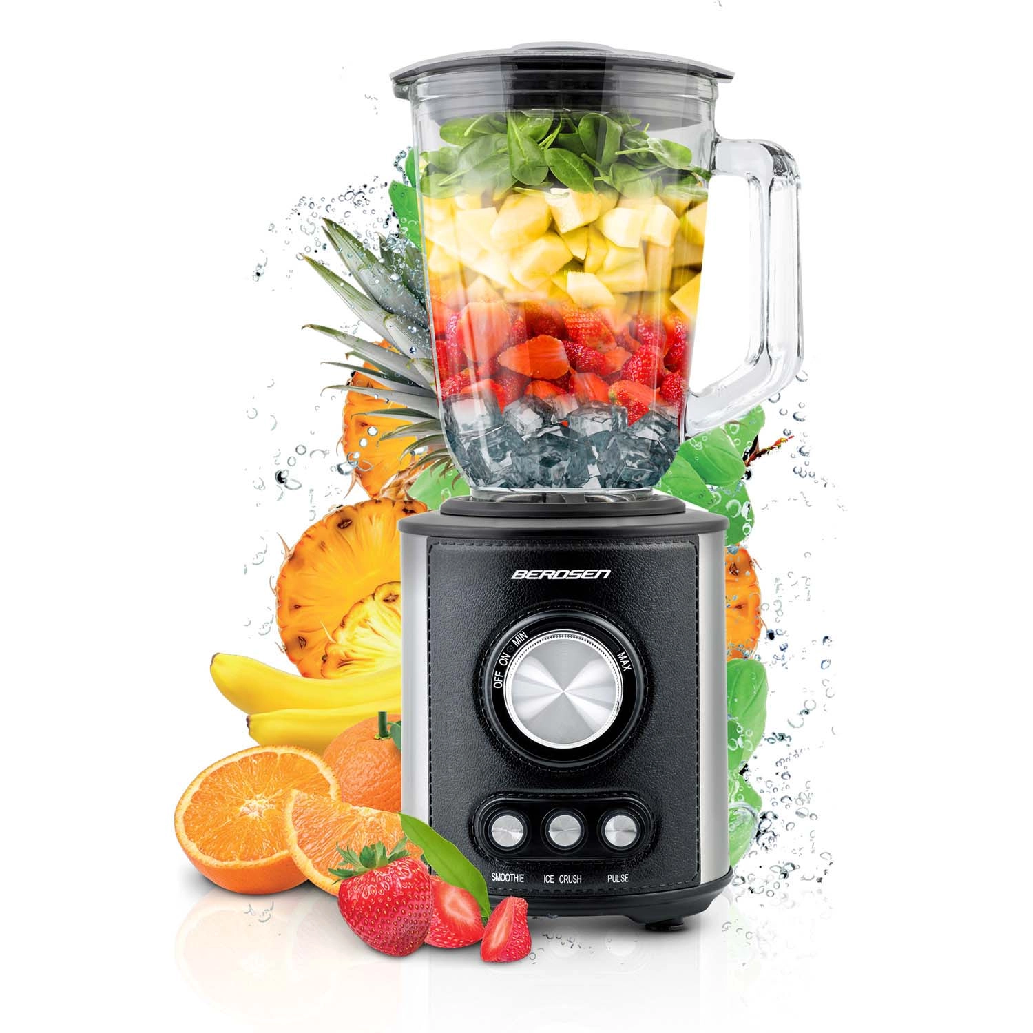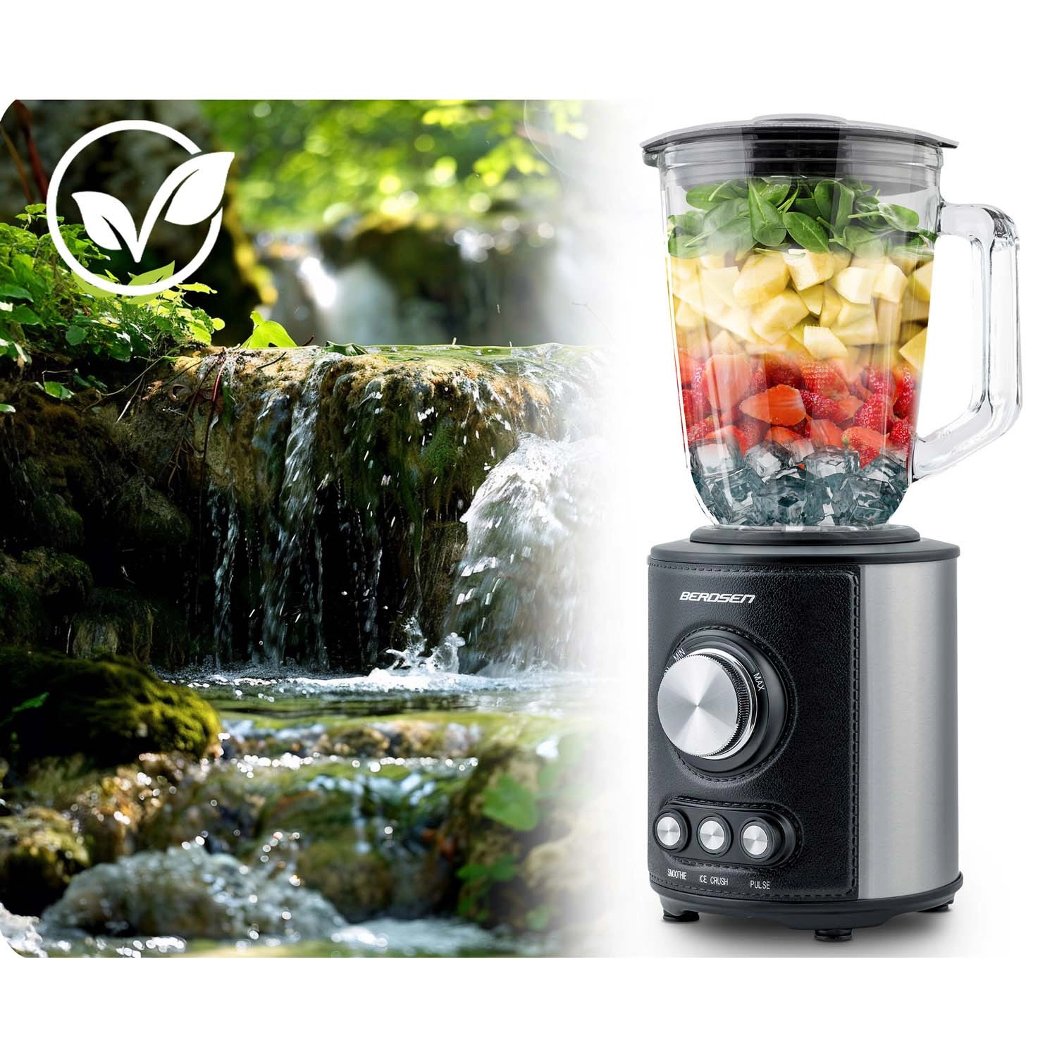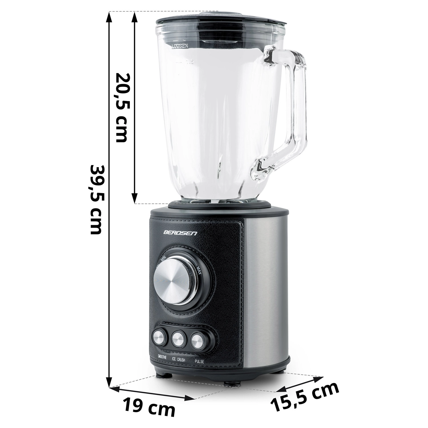 A nagy teljesítményű BERDSEN asztali turmix 1,5 l űrtartalommal és 800 W motorral smoothie-khoz, levesekhez és jégzúzáshoz. Üvegkancsóval, rozsdamentes acél késekkel és 3 automatikus programmal – Smoothie, Ice Crush és Pulse. Értékelni fogja a háttérvilágítású vezérlést, a csúszásgátló lábakat, az egyszerű tisztítást, valamint a túlmelegedés és a helytelen összeszerelés elleni biztonsági reteszeket.