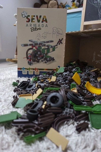 A SEVA Hadsereg – csata építőkészlet végtelen alkotási és játék lehetőséget kínál a gyerekeknek. A 958 gondosan kidolgozott elemmel valósághű katonai járművek és fantáziadús szerkezetek építhetők. Cseh minőség, ftalátmentes, biztonságos anyagok és bevált gyártás garantálja a hosszú élettartamot és a biztonságos játékot.